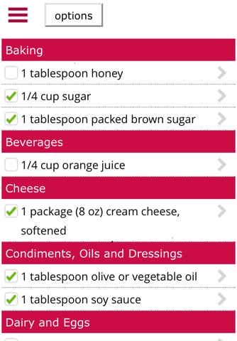 Plan your meals ahead of time with the meal planner and then head off to the grocery store with your shopping list. Sort your shopping list by recipe or category (aisle) to easily find your items in the store.