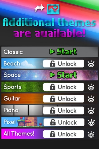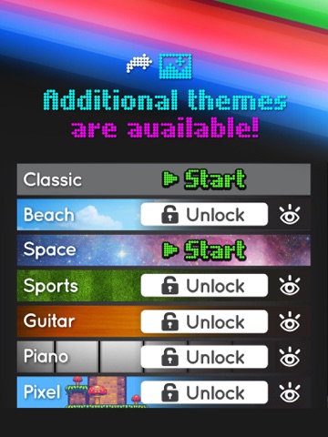 + 7 themes with custom sound effects: Classic, Beach, Space, Sports, Guitar, Piano, and Pixel