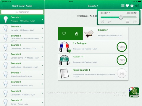 Très très bonne appli qui ma donné envie dacheter la version complète pour en profiter complètement. Possibilité découter les sourates en hors ligne et informations complémentaire concernant la période de révélation de chaque sourate.Vraiment très bonne application,que Dieu vous préserve.