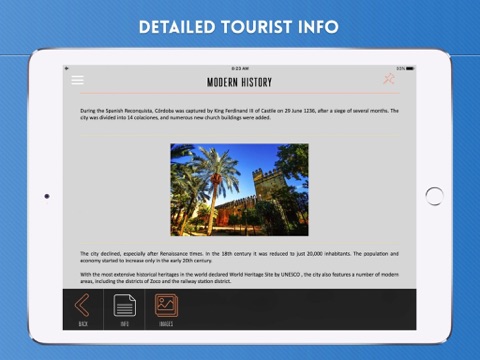 Unlike other guides, eTips Travel Guide provides you with interactive zoomable OFFLINE MAPS (x6 zoom + GPS capable) of the region showing the attractions, public bus stops, restaurants, pubs, hotels, hospitals and many other useful points of interest. You cannot get lost!. With this guide, you will not only visit the city but also move around its region.