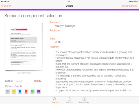 This application is a CORE mobile client for iPhone and iPad. The application makes it possible to search for scholarly publications available in CORE completely free of charge. The publications can be downloaded and stored on your device, for example in iBooks.