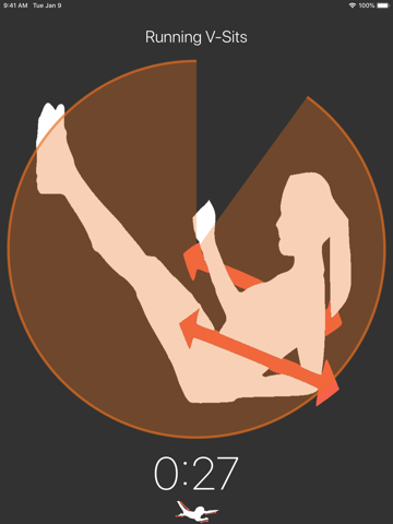 The app will guide you through the workout with vibrations, sound and a visual countdown until when you switch to the next exercise while you jam out to your favorite playlist. It is also customizable for the amount of time you do each exercise and the rest time in-between each exercise.