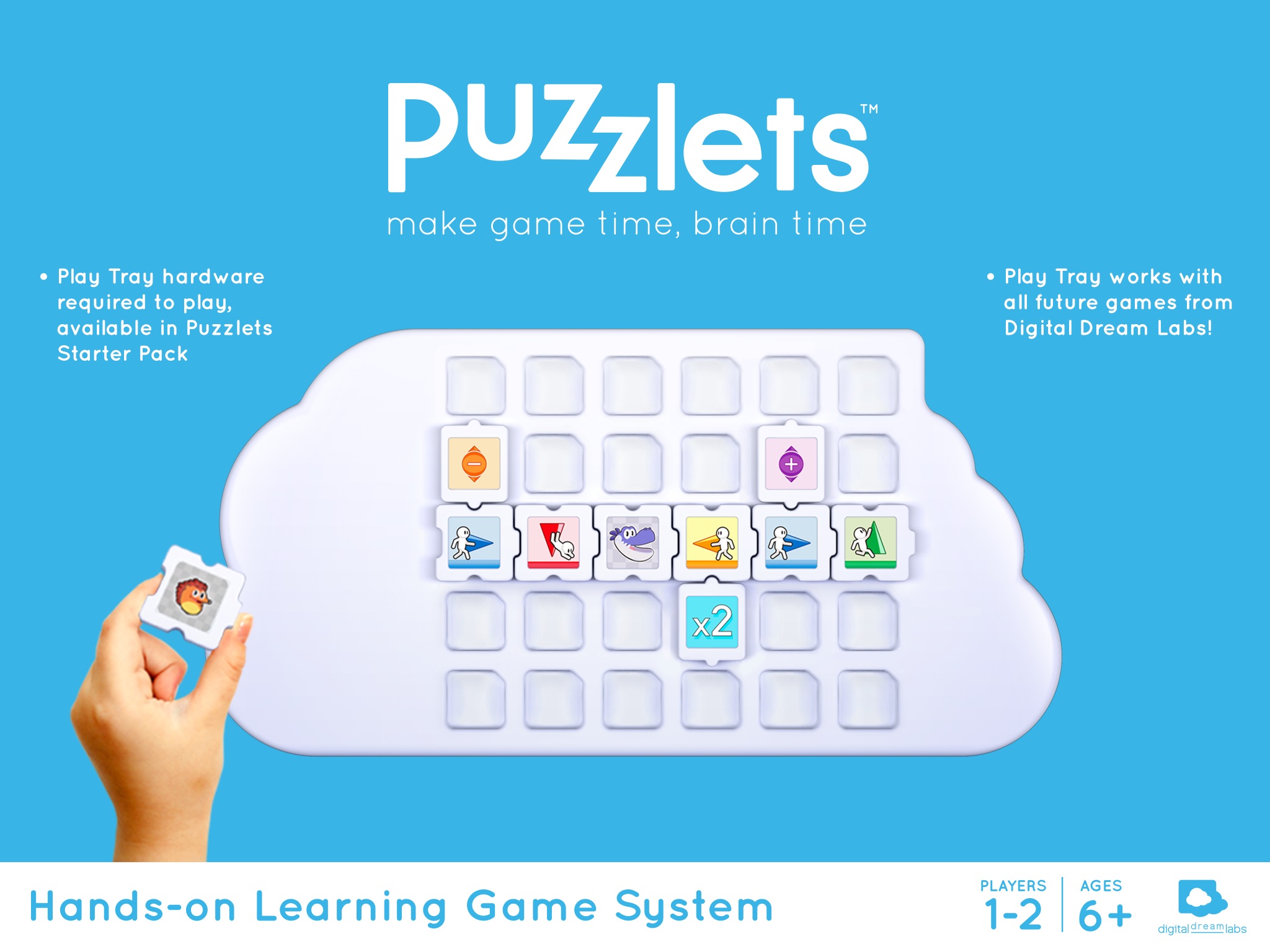 Think outside the screen with a puzzling new way to play. Put Puzzlets together on the Play Tray to control what happens in the game. Build programs out of real pieces, then run them in the game to help Rus the Dinosaur, Sydney the sloth, and Hippo the Hedgehog save Pear Island from an erupting volcano.