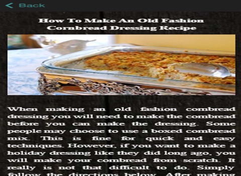 Cornbread Recipes is a app that includes some very helpful information for How To Make An Old Fashion Cornbread Dressing Recipe !!