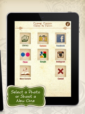 Instantly turn boring photos into beautiful, fun, creative masterpieces. Add beautifully designed custom photo corners to photos you shoot or pull from you Facebook, Instagram, Flickr or photo library. Then email or share your creations with friends and relatives on Twitter, Facebook, Instagram, Flickr and more. Dazzle your friends at how creative you have become.