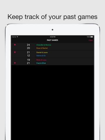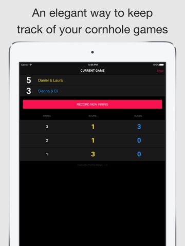 Keep track of your cornhole scores. Customize your team names and colors. Keep track of past games.