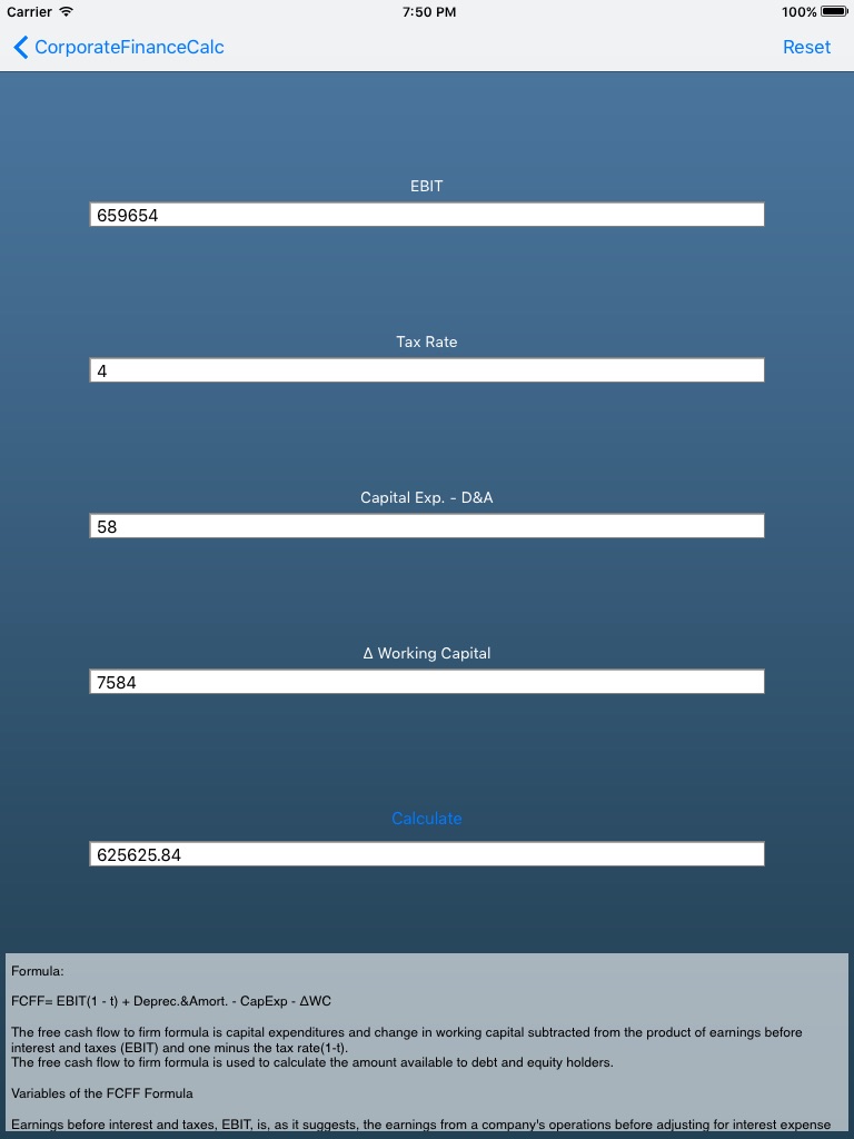 CorporateFinanceCalc provides an easy and stress free way of calculating a selection of 25 most important ratios (listed below) used in financial and investment analysis.
