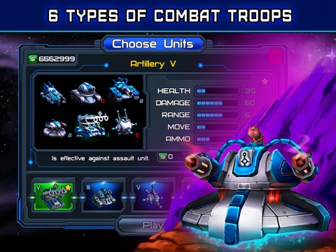 - 6 types of combat units;