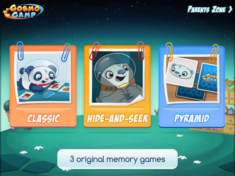 Stimulate your child’s memory with the all new CosmoCamp: Matching Games app.