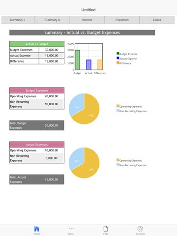 You can separate income and business expenses into categories that closely match those used in an income statement. It also includes a section on Goods Company Budget for recording inventory and purchases and calculating Gross Profit. The app has been well designed for manufacturers, retailers and publishers. The categories are fairly comprehensive, but it is also easy to modify the categories.