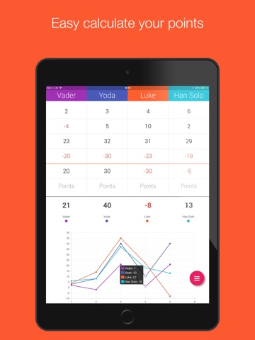 Count Score does the calculating for you for various games. Simply enter the points for each round and Count Score calculates the result. The app adds up the scores and shows you the position of each player in a diagram.