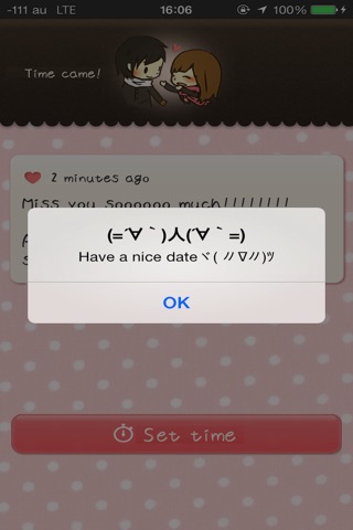 (Optionally) if both of you have Twitter account, this app whisper your partners latest tweet.