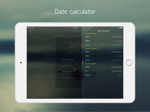 This is best countdown app available in the AppStore and is optimized for iOS10, with blur effects, vector images, and various features.