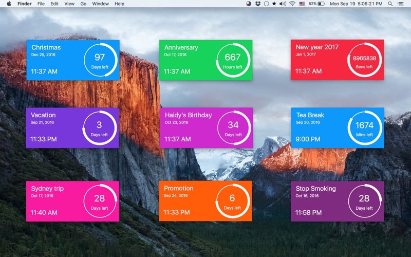 With Countdown Timer Plus you will never miss another birthday, retirement date, wedding day, football game, vacation, or any other important date, including shopping sales event.
