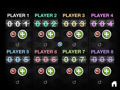 A simple counter that lets you count for up to 8 players. Use the +/- buttons to increment and decrement the counter or press the reset button to set the counter to 0. Each counter goes up to 999.