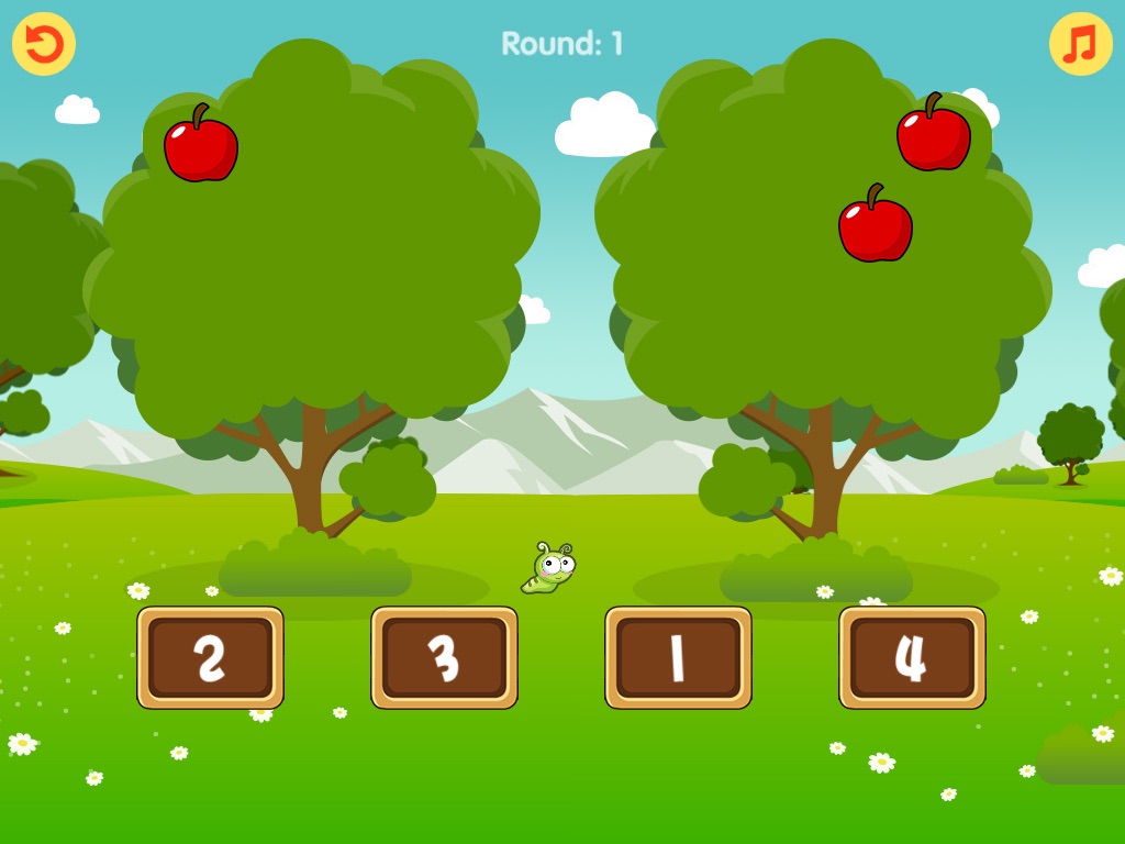 2. Click on the apple, Numbers are read aloud to reinforce understanding.