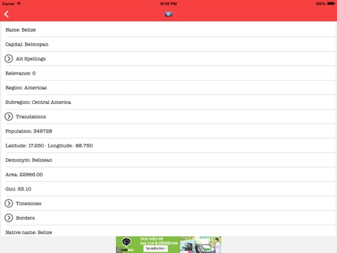 Countries give you information of 247 country. Information include name, capital, alt spelling of country, translation, relevance, region, subregion, population, location, demonym, area, timezones, border countries, native name, alpha code, currency and languages.
