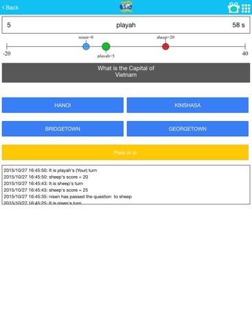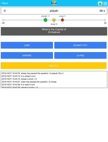 3. Turn Style - This is a turn by turn style in which players are presented questions on a turn basis. You can pass a question on your turn to the player after you.