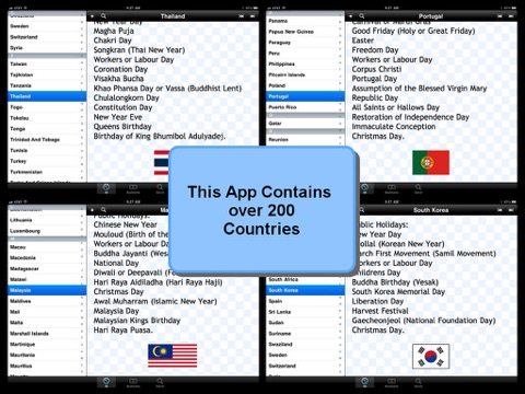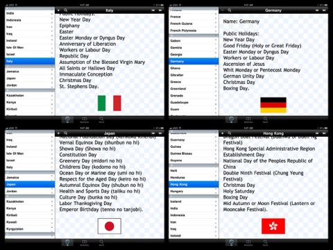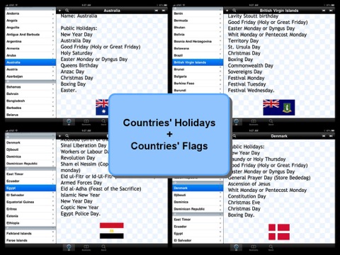 Country Flag Glossary is an application containing information of all countries (233 in total) Flag and public Holidays. This is an ideal application for children, as well as for those who are interested to know how each Countrys National Flag looks like.