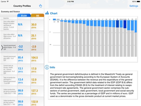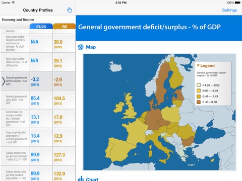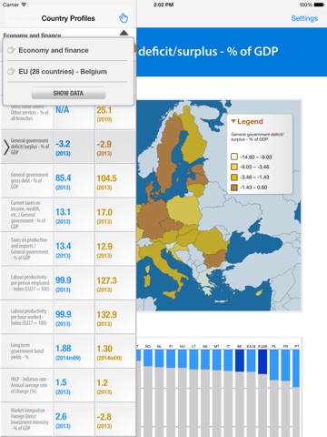 The Eurostat Country Profiles application gives mobile access to the main statistical data for the EU and its Member States, the euro area, EFTA countries, EU candidate countries and a few other countries. The update function allows the downloading of the freshest data from the Eurostat data server.