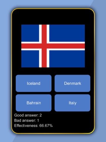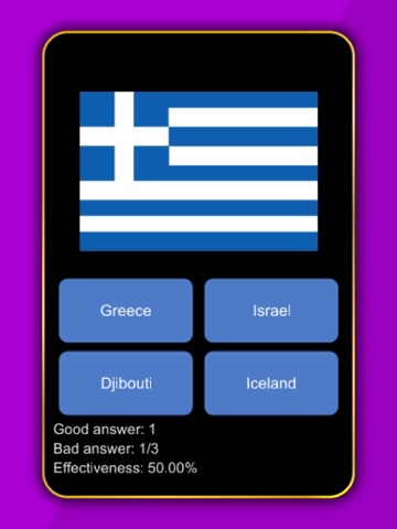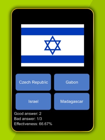 The screen is the flag of the country and under are four possible answers.