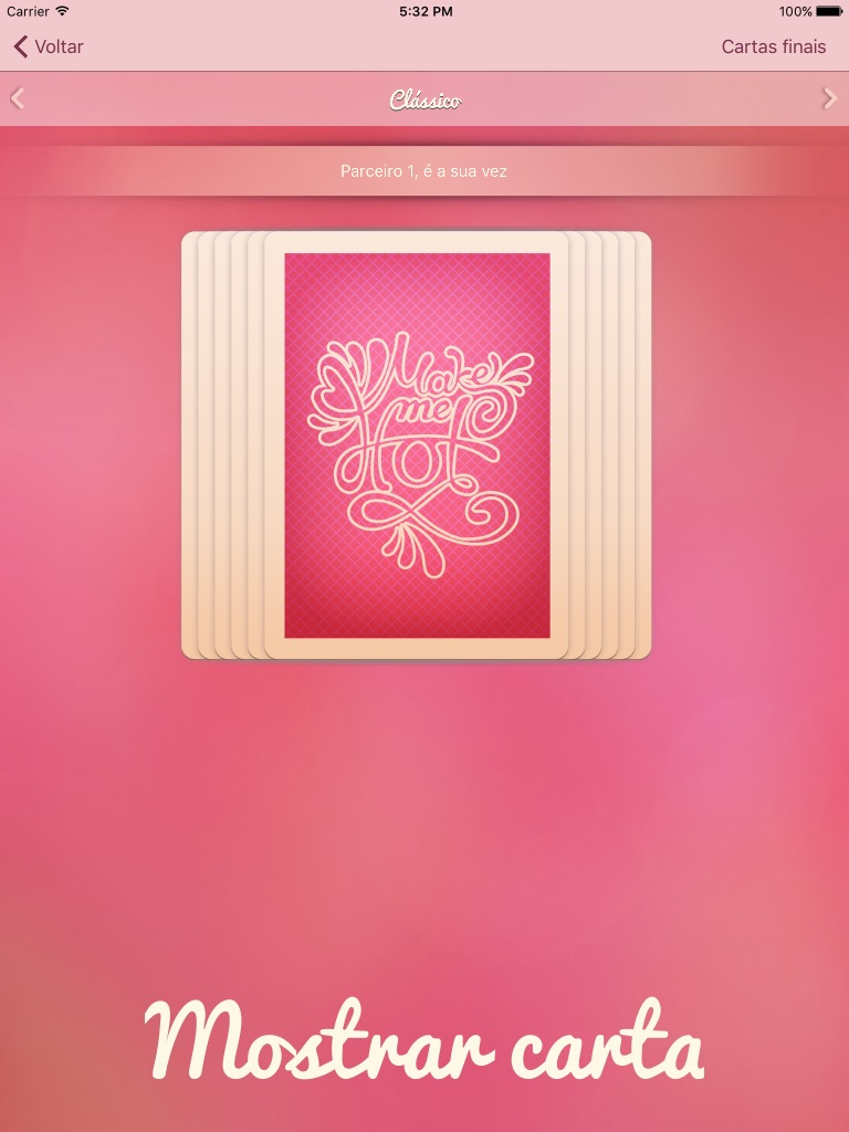 The game rules are very simple. At the first sight an ordinary deck of cards contains cards with hot (and even hotter) activities. After the first partner to go draws a card from the deck, the second partner must perform the activity written on the card in the predefined time limit.