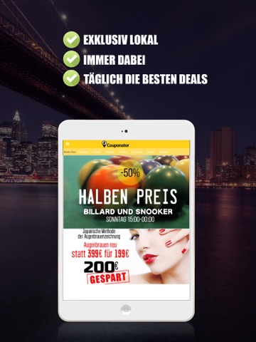 Die "Couponator" App lädt alle Besucher ganz herzlich zum Stöbern ein. Zu entdecken gibt es Angebote, Annonce und Rabatte. Alle Einträge sind sogar mit Bildmaterial genau beschrieben, so dass ein Besucher schon im Vorfeld einen kurzen Überblick über die Dienstleistungen Anbeters erhält. Zur besseren Übersicht werden alle Einträge in thematisch passenden Kategorien erfasst, wodurch ein Auffinden ähnlicher Angebote erleichtert wird.