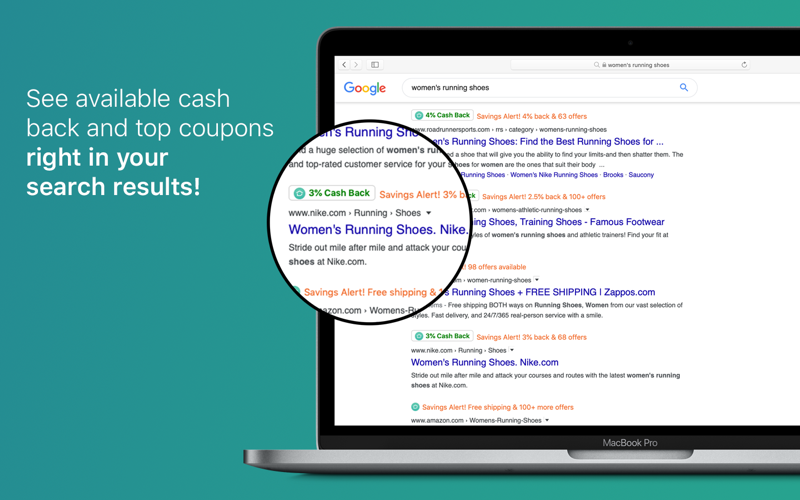 Shop online at your favorite stores, and The CouponCabin Sidekick will discretely notify you of available offers and cash back opportunities. Search for a specific product or store, and The CouponCabin Sidekick will appear in your search results, calling out the best deal. Its a friendly reminder of the coupons and cash that can be yours with just a click.