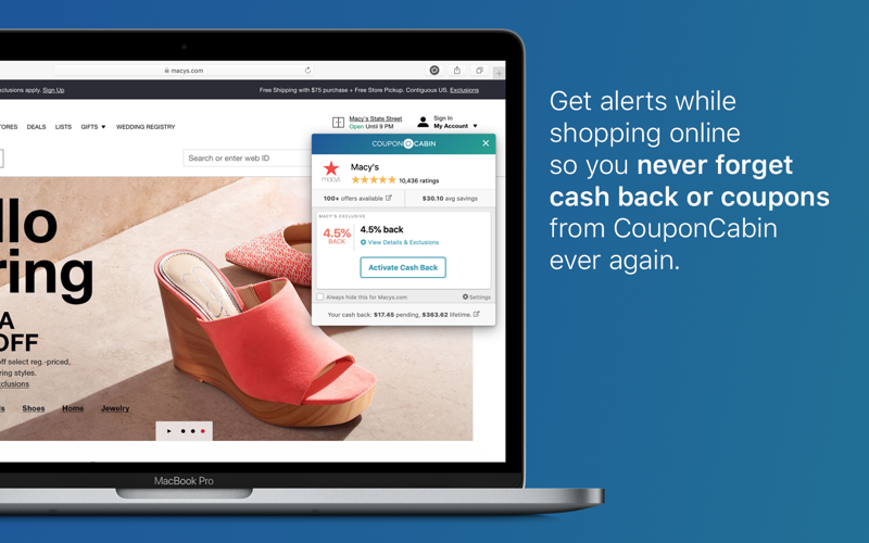 Its free and easy-to-use. Just install The CouponCabin Sidekick and login so that we know where to credit the cash after your order. When the sidekick appears, click on the Activate Cash Back button to earn cash back and the See Offers button to see available coupons. With The CouponCabin Sidekick youll never pay full price again!