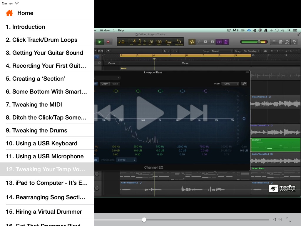 This 36-tutorial course takes you on a GarageBand songwriting journey. It begins on the iPad. It develops on the Mac and reaches final production as it moves up to Logic Pro X for the finishing touches. Come along for the ride!