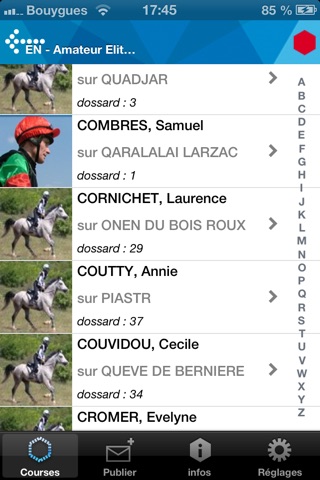 Vous avez accès à la liste des participants d’une course ainsi qu’à la liste des chevaux de chaque épreuve.