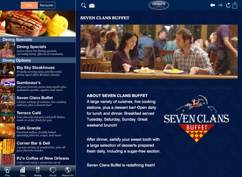 Make reservations at Big Sky Steakhouse, view the dinner menu for Seven Clans Buffet, or checkout the current dining promotions. It’s that easy with the app!