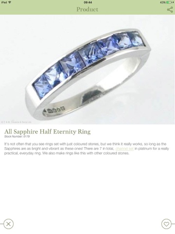 Effectively, this app is a guided tour of the window displays and, although the glossary of terms and 5 favourite items can be accessed at any time, the usefulness of the app is limited when the jewellery is not in view.