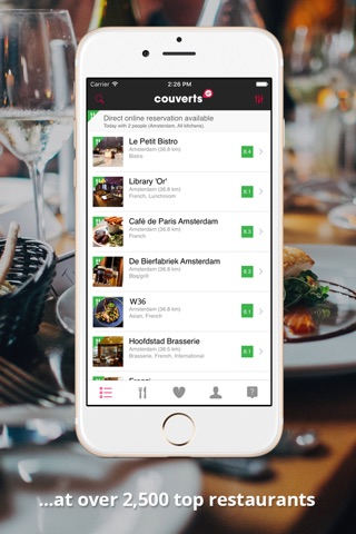 Couverts makes eating out much more fun. Using our iOS app, you can book a table quickly and easily, even if you do so last minute. You can choose from over 2,500 hotspots throughout the Netherlands. Download the restaurant app and you are 100% guaranteed to have a table in just 3 clicks. There is sure to be an excellent French bistro, Asian hotspot or a chic star restaurant to your liking.
