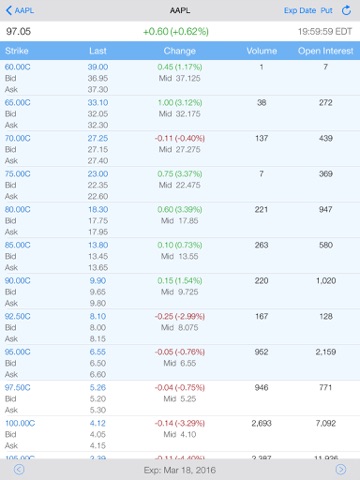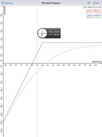 Creating, reviewing, and sharing your options strategies are so easy! Just follow our clear on-screen guidance. You can conveniently modify the strategy according to your own needs, like adding stock and options legs, edit the strike price, change the share / contract number, etc. With a few clicks and you are all set! Your strategies are automatically saved for further review / research. You can then study the strategy payoff diagram and observe the time decay impact through multi-touch features like pinch-to-zoom, double-touch-reset, two-finger-move, etc. Pressing one finger on the chart for a short moment, you can also bring out a magnifier for precise chart reading. Share the strategies easily by email with just one simple tap!