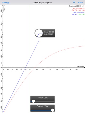 Covered Call is very powerful in helping you make right decisions in options trading. It helps you watch the market through visualized market information and visualize your risk/reward of the option strategy. Using the Black-Scholes model to price options, Covered Call draws / visualizes the payoff of options strategies and clearly presents how time decay impacts strategies. Play with the IV Slider and the Date Slider to watch the impact and evaluate your strategy further more. Also enjoy the dynamic, lightening fast, near Real-Time options chains.