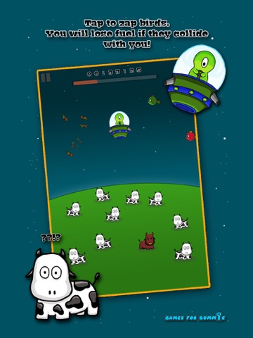 Gameplay is simple, yet so fun! Press and hold a cow to abduct it, and tap birds to zap them out of the sky. Compete with friends, and the world with Game Center leader board support and see who can keep Peter the Martian in the air as long as possible!