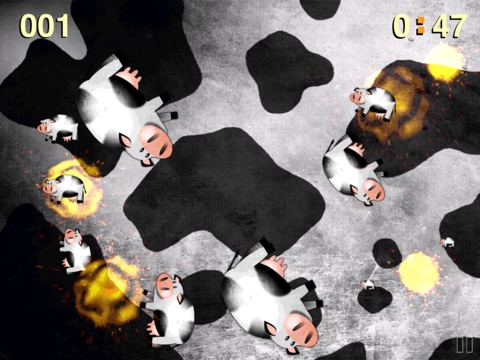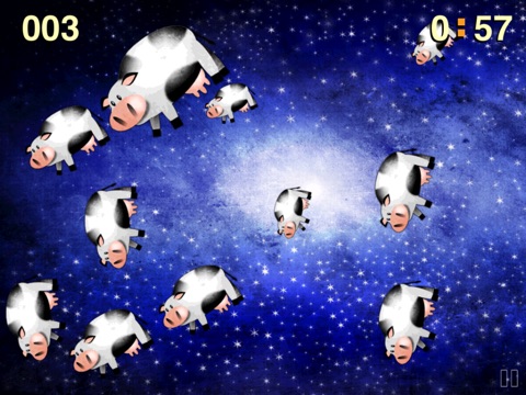 Decades ago an intrepid herd of cows were blasted into space for experimental purposes. Experiment complete, they cannot stay in space, nor return to earth. It is down to you, brave space-cowboy, to blow-up these cows before cow-tastrophe!! Remember: cows in space dont just explode, they blast into smaller and smaller cows before they disappear!! Use your speedy reflexes to clear each level of space from cows. Its as simple as that!! Exploding fingers at the ready - ROLL OUT THE COWS!!!!