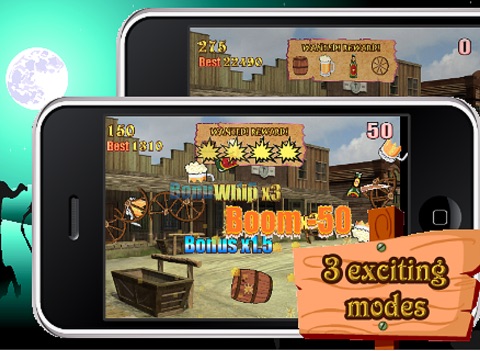 Cowboys Whip have 3 modes of game play: Classic, Arcade and Crazy 30 seconds. You will definitely enjoy this interesting cheap iphone game.