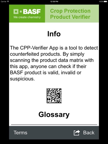 Just start the app, scan the 2D-Matrix-Code, which you can find on BASF CPP packages (bottle label, box label) and the app will tell you if the product label is valid, invalid or suspicious.