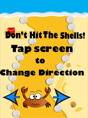 Tap the screen to alternate the crabs direction of movement and avoid crashing into the shells.