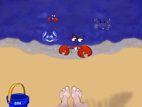 Your job? Smack the crab and collect it in your bucket. Miss and your round is over. Watch out, as time continues, more crabs appear racing faster across the beach: