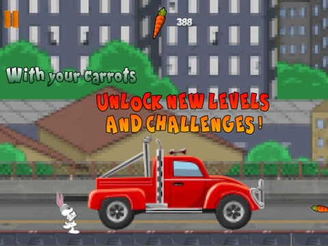 Your task? Simple. Choose your level and run through the mountains, forest or city and collect as many carrots as you can... Your challenge is to jump over any obstacle that might block your path. Dont be fooled, jumping over those obstacles seems like a simple task... but its actually really hard... Like really really annoying... Your Rabbit jumps pretty high but the obstacles are SUPER long and its really hard to jump at the right time so you dont hit it. If you miss the right moment to jump, you will hit it !