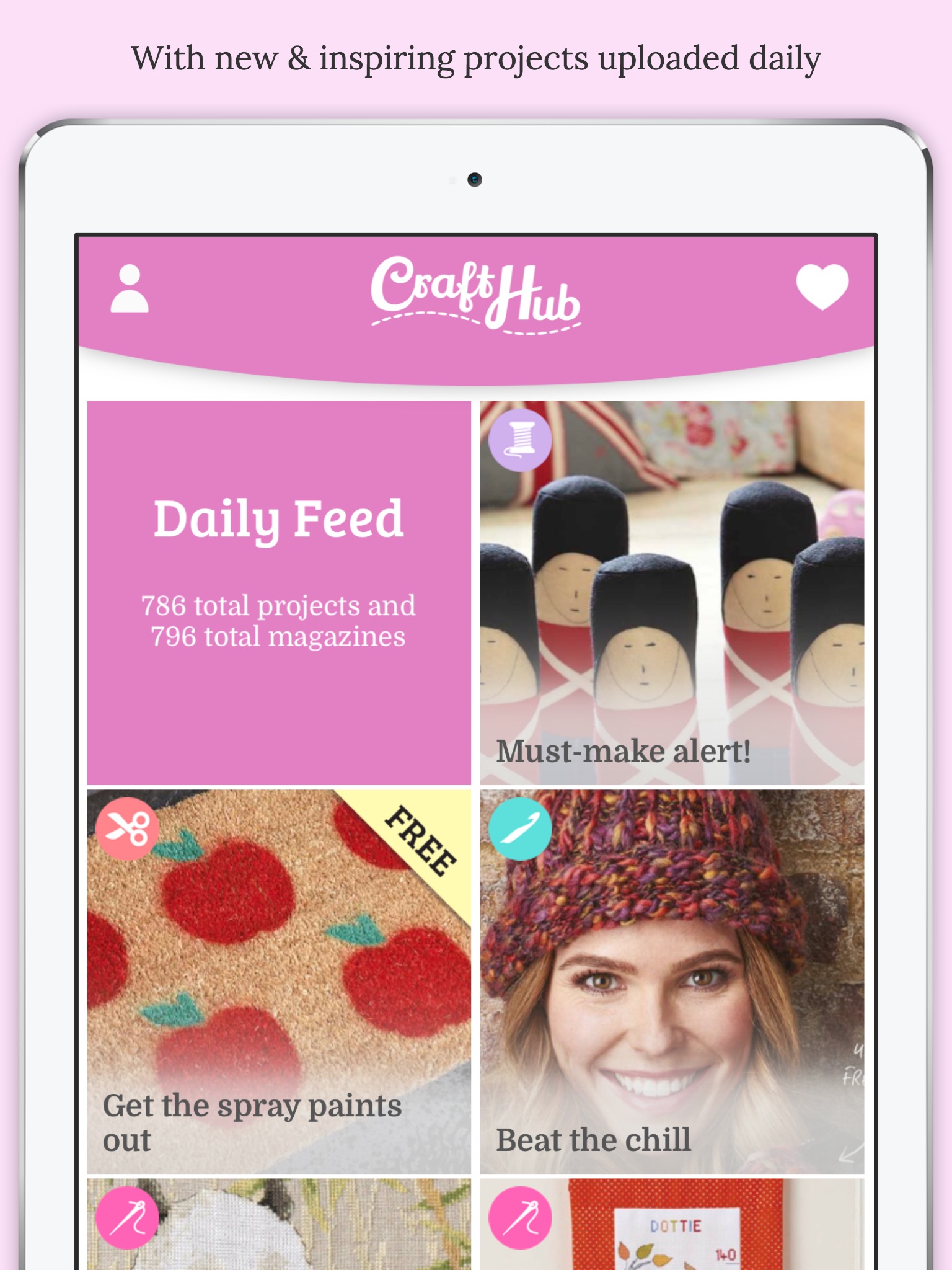Never be far from your craft stash: Wherever you are, use the CraftHub app to check in on the latest seasonal projects and favourite them for them for when youre free to get started.