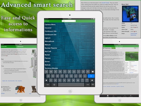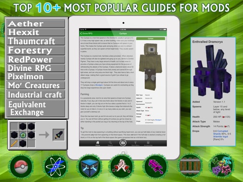 This app will help you with mods in Minecraft without having to get out of Minecraft. You can look on your iPhone/iPad/iPod and learn what is what for and how you get it.