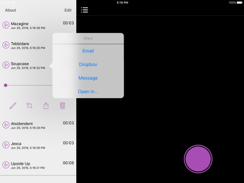 - Share with family and friends through AirDrop, email, dropbox or open the recording in other apps.