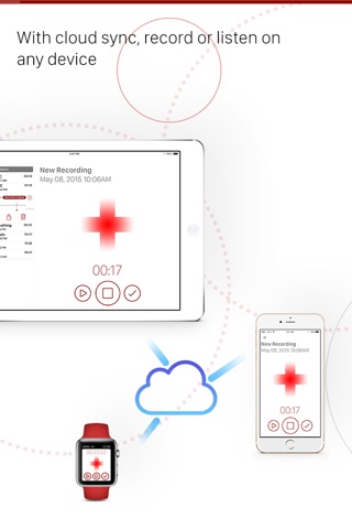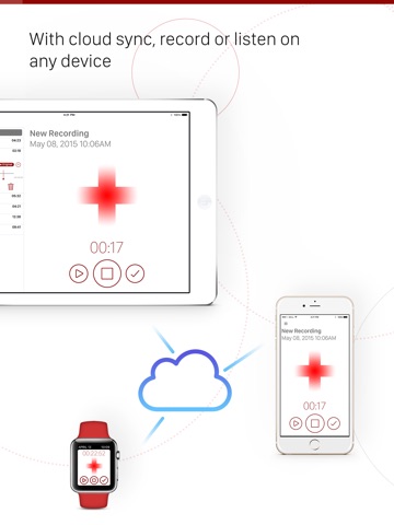 - A recording on any of your devices, is saved to iCloud and automatically synced to all devices.