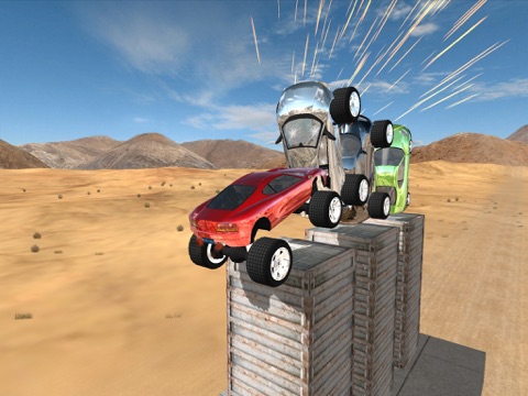 Crazy 3D jumping monster cars crash stunts! To drive awesome BigFoots or sports cars to do car crash show on high stages! These stunt cars are not only BigFoot or sports car but also crazy lowrider jumping car! Speed them up rapidly to a proper place and then jump into the air with a proper force, and then fly to all kinds of fanciful luxurious cars which are exhibited by various style on the thrilling high stages! Fierce explosion, fire-spraying, car rolling,dust raising,spark splashing,fragment flying follow! All of these scenes are presented in retina HD to bring you breathtaking and extremely exciting feel with shocked and vivid sound effects and realistic shadow!