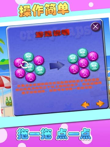 经典模式:所有的瓶盖都会在过关的时候全部消除并重新排出新的瓶盖。当无路可走时游戏失败并结束。