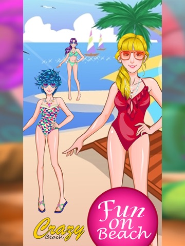 Hit the beach in chic shades and hot bikini styles as you soak up the sun in an assortment of 1 or 2 piece suits with matching gogals, hairs style, necklace, earrings, and shoes.